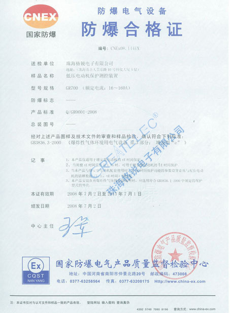 當前位置: 公司資質(zhì) 型式檢驗報告/3C證書(shū) > 電動(dòng)機保護