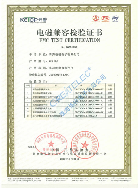 當前位置: 公司資質(zhì) 型式檢驗報告/3C證書(shū) > 多功能電力儀表